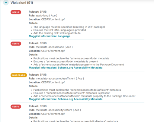hai creato attentamente il tuo ebook ma non riesci proprio a superare il test dell'Accessibilità (ACE) per ePub.